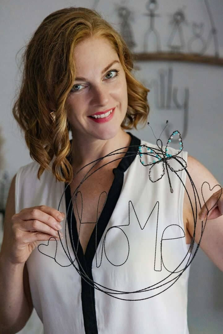 Drahtbild "home" mit Schmetterling aus Draht und Perlen
